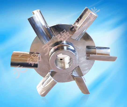 結晶罐:主要攪拌目的是促成晶核生成和長大,因此采用低轉速大直徑的周向流動,降低剪切速度防止破壞晶體的長大和防止晶體沉積罐底使晶體大小不均勻。使用的槳葉形式有:斜葉槳式(XJ、HJ、QJ等),錨框式(MS、KS、KSA,FSS等)。
